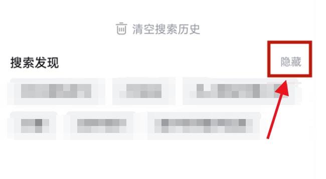 3、找到最下面的搜索发现,点击右侧隐藏即可。