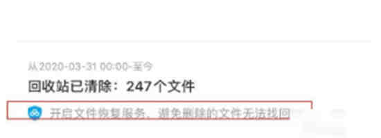 3、接着在“回收站”界面中,点击下方的“开启文件恢复服务,避免删除的文件无法找回”选项。