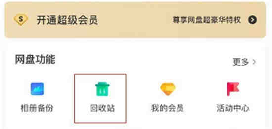 2、然后在“我的”界面中,点击“网盘功能”一栏中的“回收站”图标。